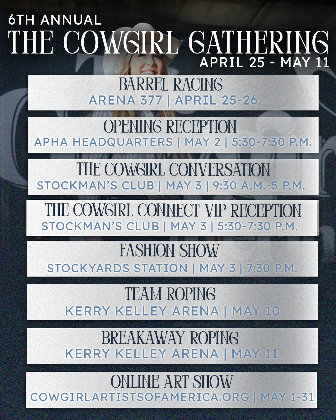 For those who cannot attend in person, the Cowgirl Gathering and Cowgirl Artists of America art showcase will be viewable online for the whole month of May. Tickets for the in-person event are available online at cowgirlgathering.com, and Rodeo Life readers can also pick theirs up at a discount using the code Rodeo15 at checkout.